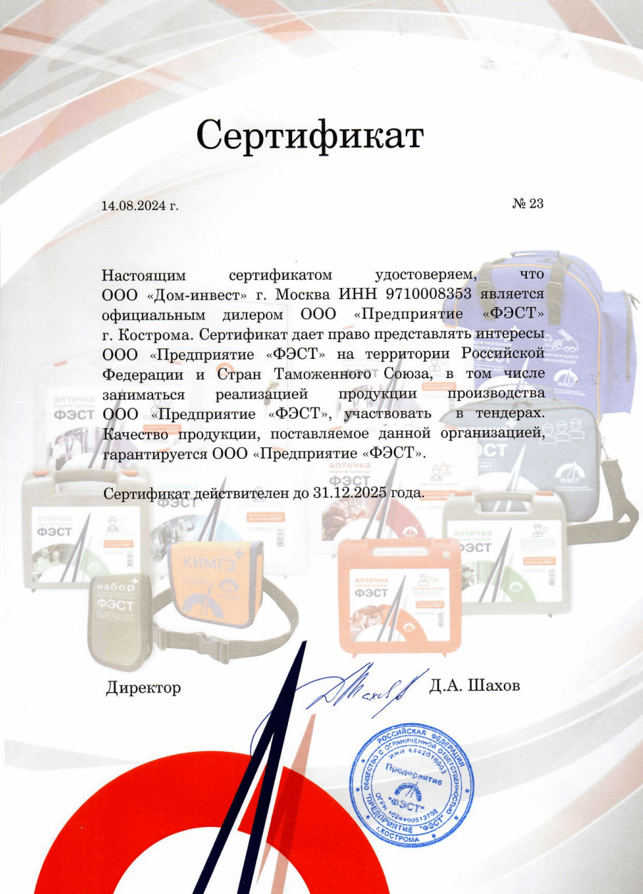 Компания ООО "Дом-инвест" является одним из Поставщиков пожарного оборудования для наших подразделений Иркутской области. Все поставки выполняются в срок и без претензий с нашей стороны.
